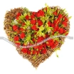 Уменьшенный: роза кустовая красная - 9 шт, цветок орхидеи - 3 шт, берграсс, каркас плетенный, оазис сердце.