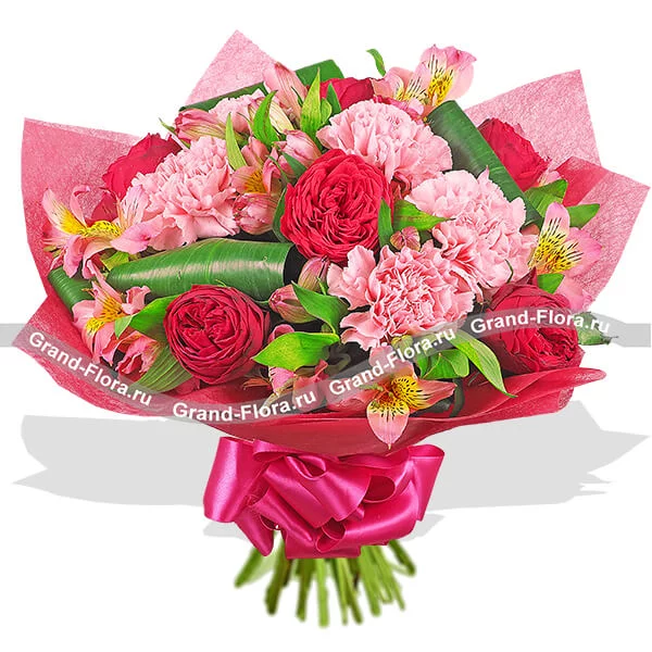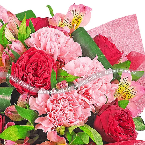 Признаться в глубоких чувствах, поведать о страсти или нежности - мужчинам помогают цветы. Лучшим комплиментом для девушки на ее дне рождении будет букет из отборных красных роз и розовых гвоздик, который порадует ее не меньше 7 дней*.