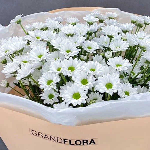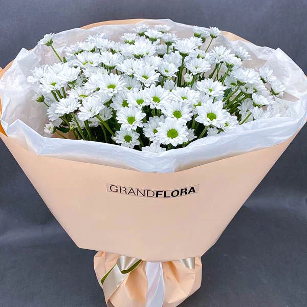 Идеальный букет для тех, кто ценит простоту и элегантность. Белые хризантемы смотрятся невероятно стильно и гармонично. Но с доставкой опоздали.